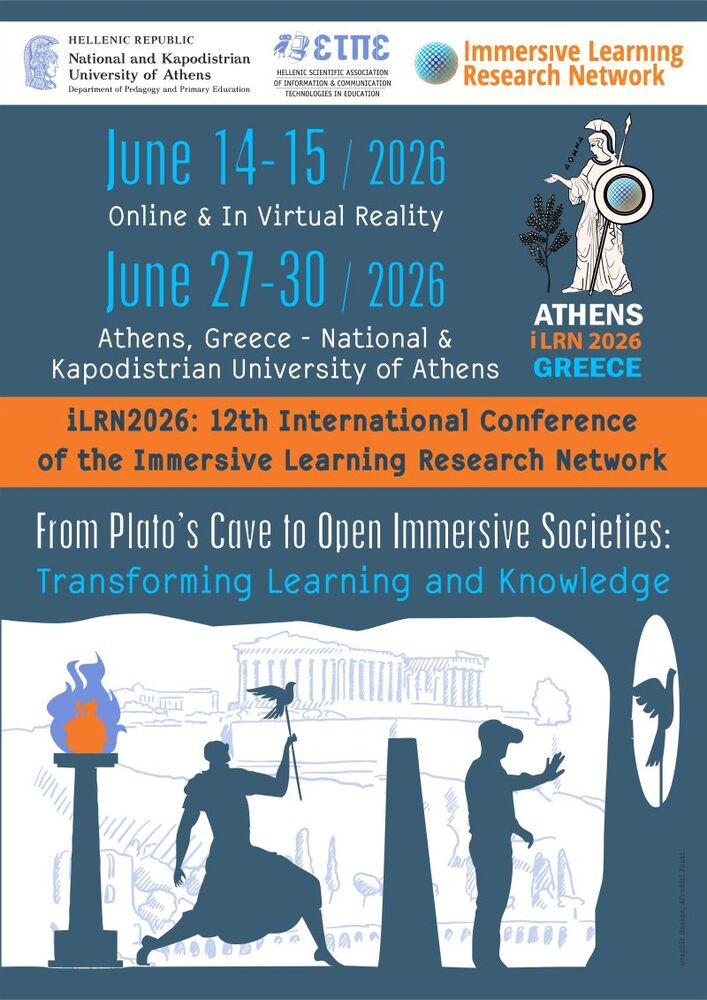 With the theme “From Plato’s Cave to Open Immersive Societies: Transforming Learning and Knowledge”, the conference will be held online & in virtual reality (June 14–15, 2026) and on-site in Athens at the National and Kapodistrian University (June 27–30, 2026).